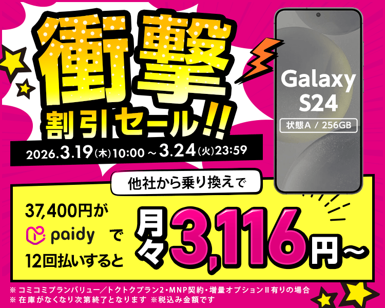 中古端末価格 36,300円〜- MNP契約