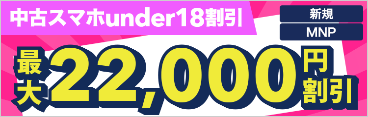【Web限定】お申込み時点で、利用者の年齢が5歳以上18歳以下のお客様は、中古端末代が新規契約・乗り換え(MNP)契約で最大22,000円割引!