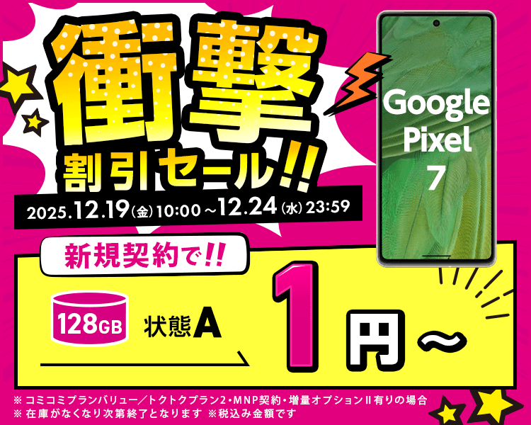 - ※端末の表示価格はUQモバイルの料金プラン「コミコミプランバリュー/トクトクプラン2」及び「増量オプションII」ご契約時の価格です。機種変更除く。