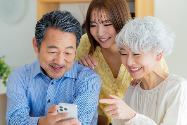 スマホの使い方を学ぶ場合、キャリアのサポート体制だけでなく、家族に教えてもらう方法もおすすめです。家族が使っているスマホと同じ機種、もしくはOS(iOSかAndroid)に合わせてスマホを購入することで、トラブルが発生しても、教える側が操作に慣れているのでスムーズに解決できる場面が増えます。